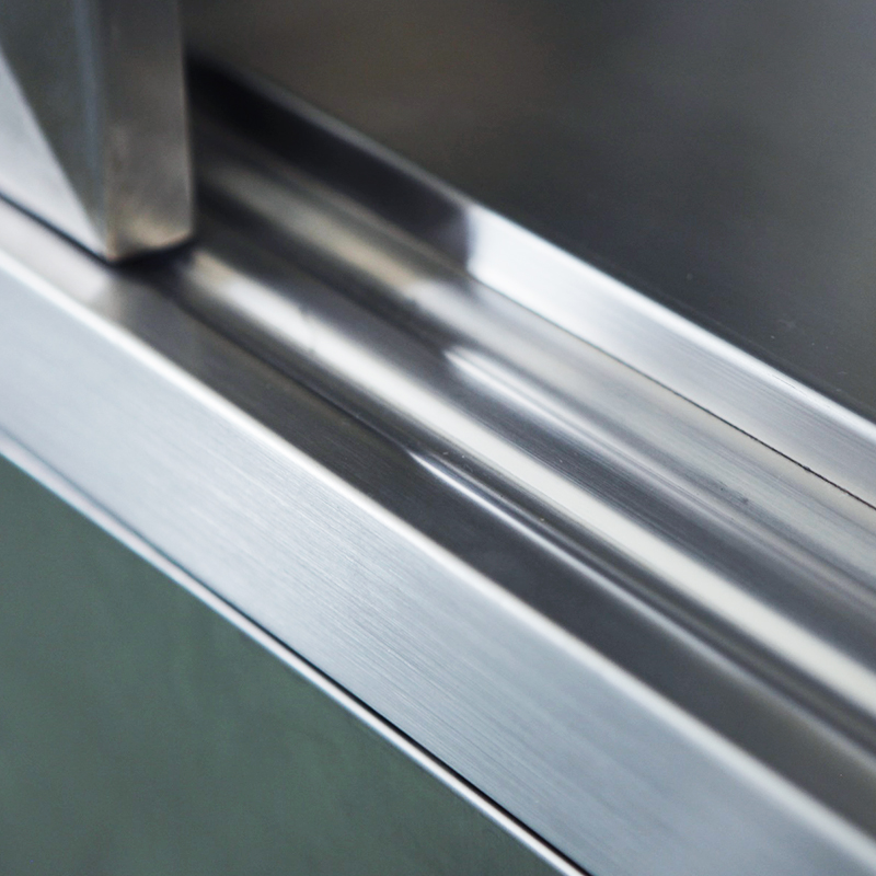 廠,實(shí)驗(yàn)室等各種小型器械的保管和存放,采用sus304不銹鋼板制作,上層為玻璃門,柜體內(nèi)部為圓弧造型,無(wú)死角易于清潔。